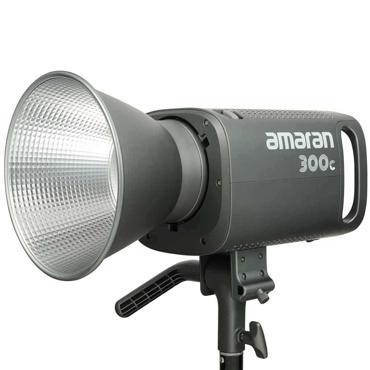 The amaran 300c is amaran’s first-ever full-color 300W Bowens Mount point-source LED light, combining RGBWW full-color control, optical and soft light Bowens Mount versatility, integrated controls, and most importantly, high-quality light output. The amaran 300c also punches well above its weight class, outputting 26,580 lux (5600K) using the included Hyper Reflector combined with 0-100% dimming control.